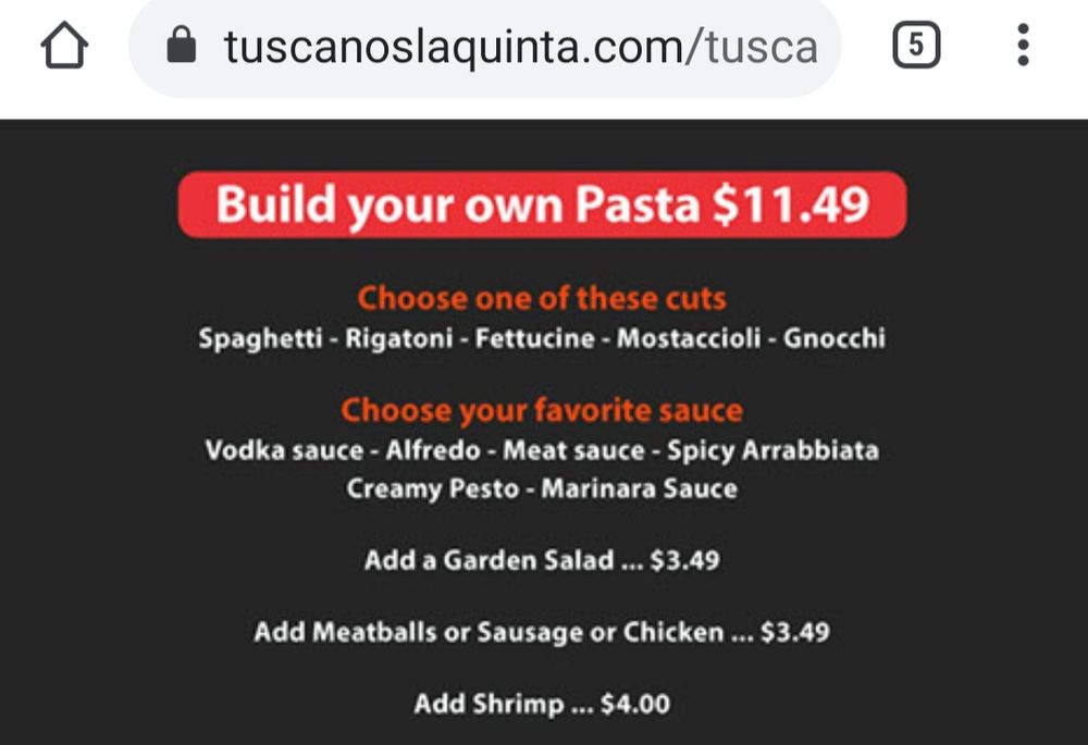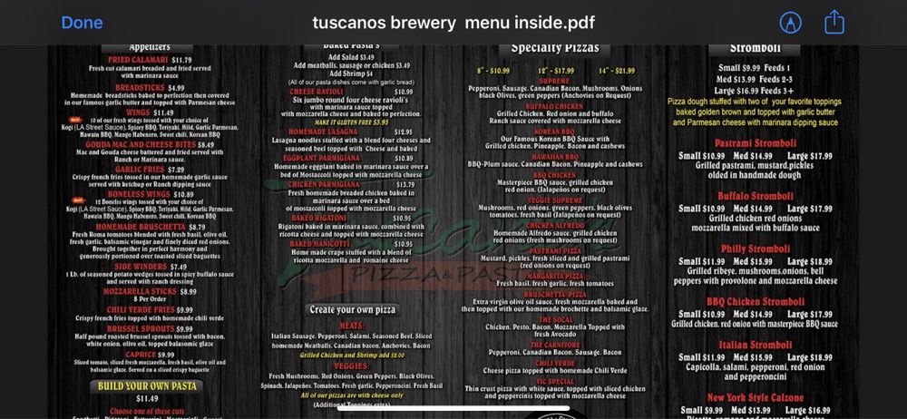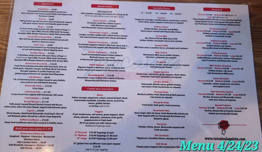 “ Ordered Margarite pizza, Kogi wings and a salad delivered via Grub Hub and it was probably the BEST dinner that I have had in the desert my ENTIRE life!! Piping hot, crust was perfect and the right amount of cheese & garlic and spices! I have been a patron of Tuscano's for years, but they have really put Italy & quality back into their pizza & food! Fantastic & Thank you for being by our families & our community! ”