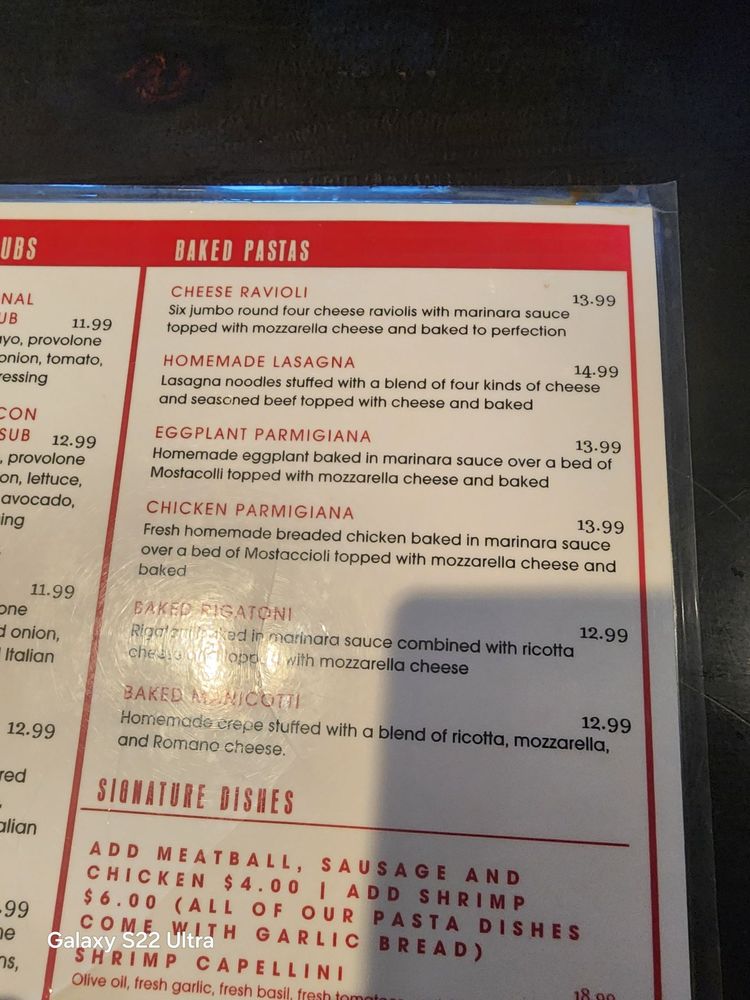 “ What a nice little gem! We actually meant to go somewhere else but ended up here instead--worked out. We had lasagna, pizza, & chicken parm, all pretty solid. The pizza was super doughy, which is great if that's your thing (and it made for a fantastic lunch next day). They also hooked us up with some free breadsticks, and the drinks were strong--winning. No complaints....Plus, the drunk guys at the bar provided some unexpected entertainment for the family while playing video games. All in all, a fun and surprisingly great spot! ”